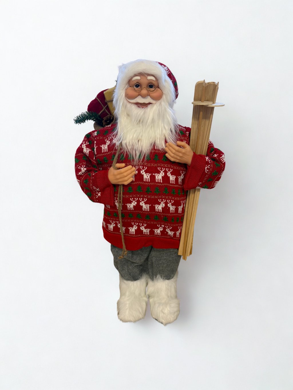 S priateľskou tvárou, hustou bielou bradou a jemným úsmevom okamžite prinesie kúzlo Vianoc do každého domova. Jeho milý výraz a realistické detaily vytvárajú pocit, akoby bol skutočne pripravený rozdávať darčeky a šíriť sviatočnú náladu.