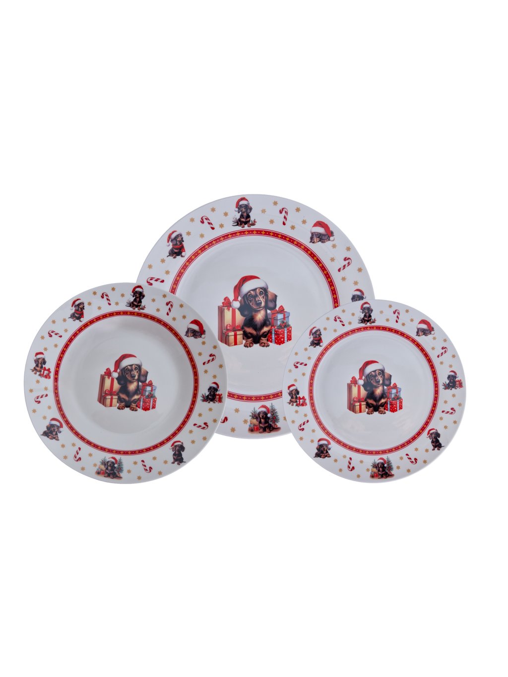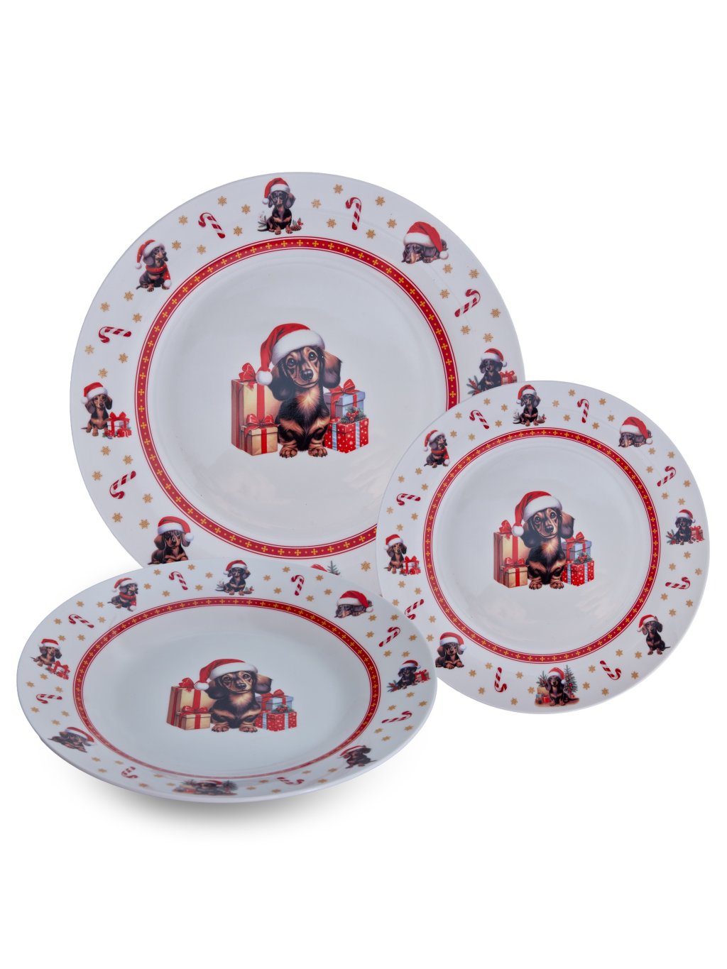 Vianočná sada tanierov s motívom jazvečíka – 12 dielna súprava